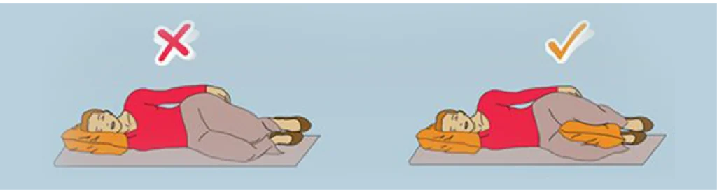 Coloca una almohada entre las rodillas para mantener las caderas, pelvis y columna vertebral alineados.