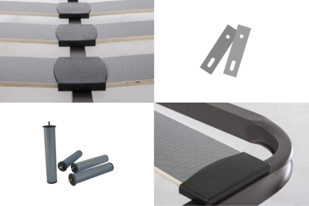- Láminas: Curvadas superpuestas, de madera natural de 120 mm, recubiertas con papel grafito en cara superior.