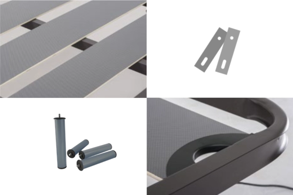 - Bastidor: Acero virgen, laminado en frío. Perfil de 40×30.